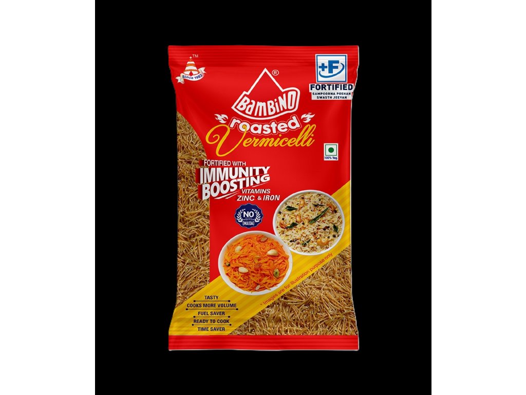 Bambino Roasted Vermicelli is made from high-quality wheat and pre-roasted to deliver a rich aroma and enhanced flavor. The roasting process gives the vermicelli a golden color and helps achieve perfect texture when cooked.