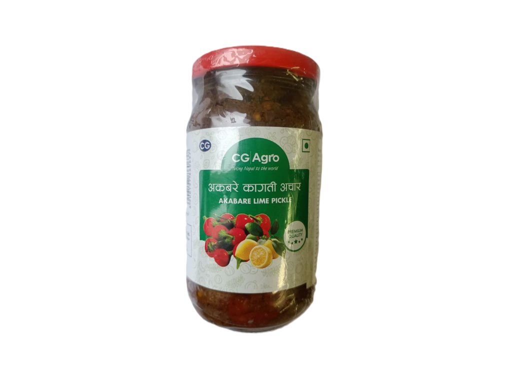 Experience the perfect harmony of heat and tang with CG Agro Akbare in Lime Pickle. Made from premium Akbare (Dalle) chillies and fresh lime slices, this pickle is naturally fermented to deliver bold, authentic Nepali flavor. Ideal for spice lovers who enjoy a sharp, refreshing kick in every bite.
