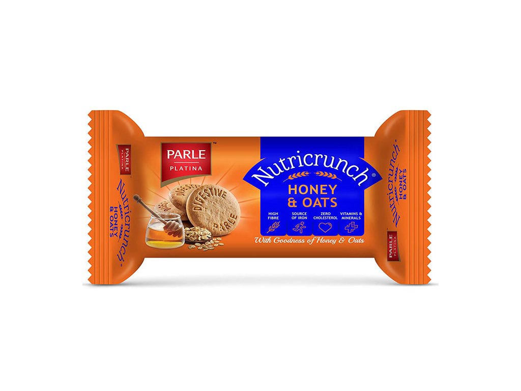 Originální trávicí sušenky s medem a ovsem Nutricrunch Digestive od světově nejprodávanější značky sušenek Parle.