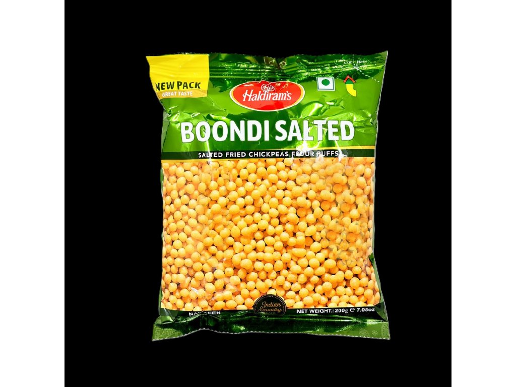 Haldiram’s Boondi Salted is a traditional Indian snack made from small crispy pearls of gram flour (besan) that are lightly salted for a simple yet delicious taste. These crunchy bites are perfect for snacking and are widely used in Indian cuisine.