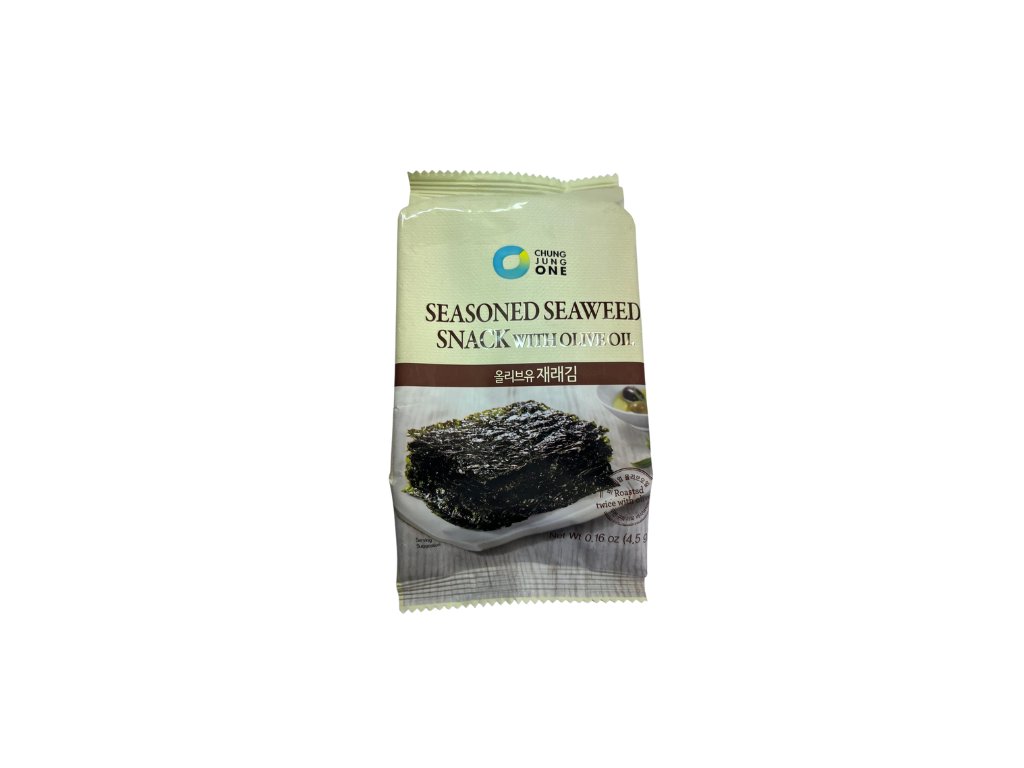 Seasoned Seaweed Snack with Olive Oil is a light and crispy Korean snack made from carefully selected dried seaweed sheets (laver / nori). The seaweed is gently roasted and seasoned with a blend of olive oil and salt, creating a savory, umami-rich flavor with a delicate crunch. It can be enjoyed straight from the pack as a healthy snack or used as a tasty topping for rice, salads, sushi, or other dishes.