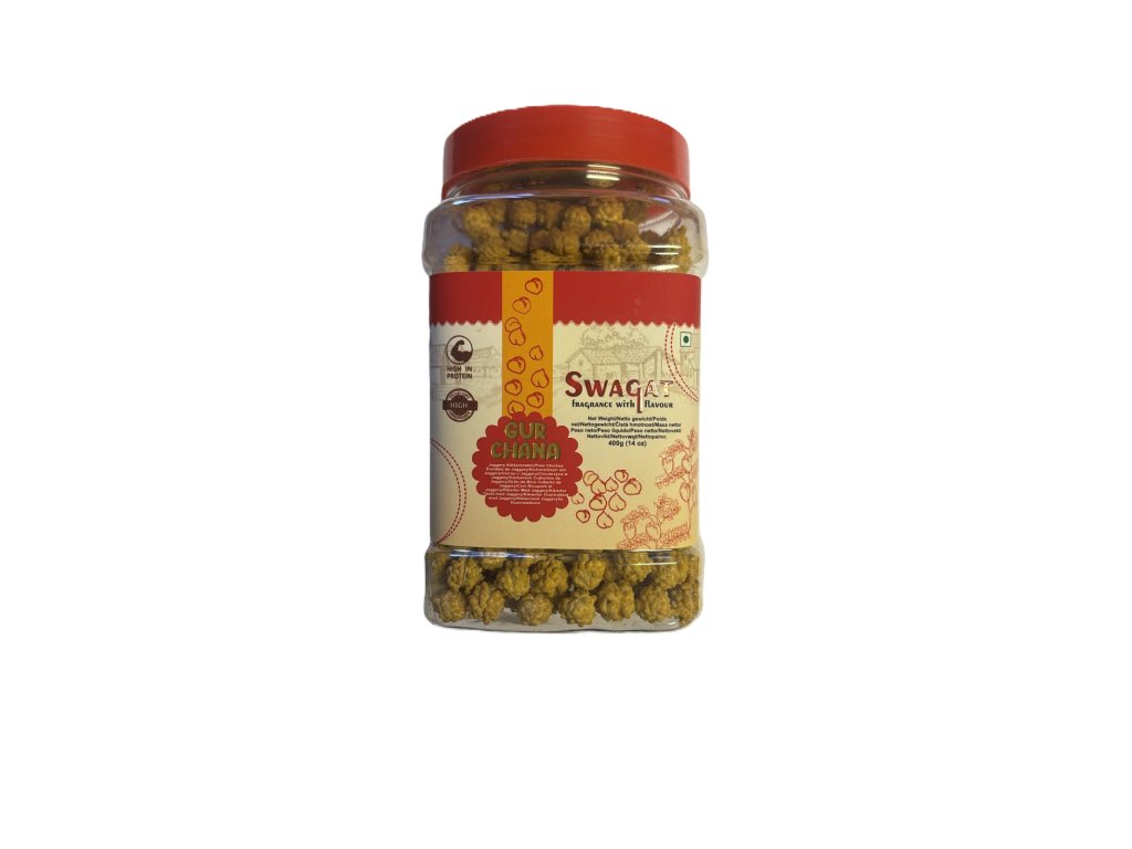 Swagat Gur Chana 400g is a traditional Indian snack made from crunchy roasted chickpeas coated with natural jaggery (gur). This delicious combination offers a perfect balance of sweetness and nuttiness, creating a satisfying and wholesome treat.